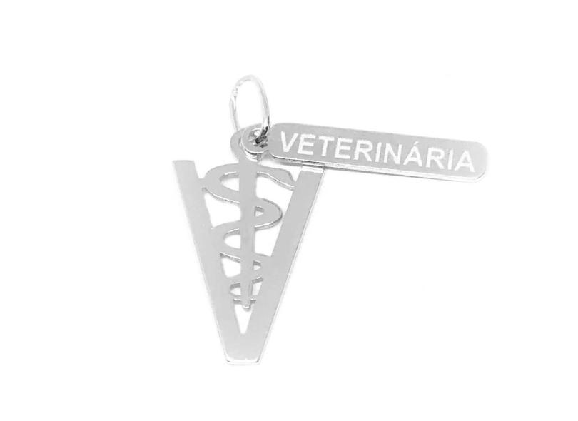 Colar com Pingente Profissão Plaquinha Medicina Veterinária 45CM Prata 925