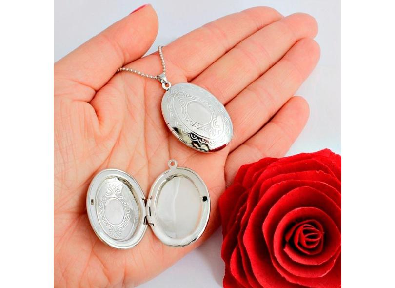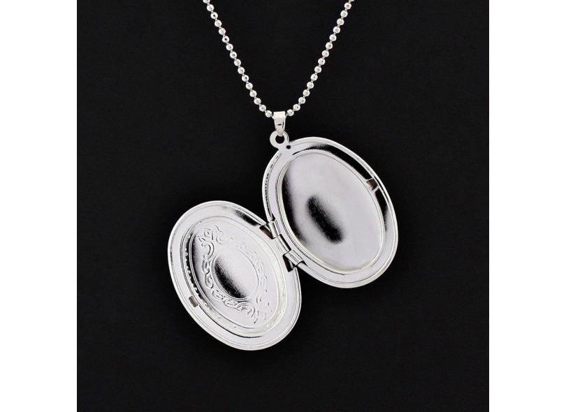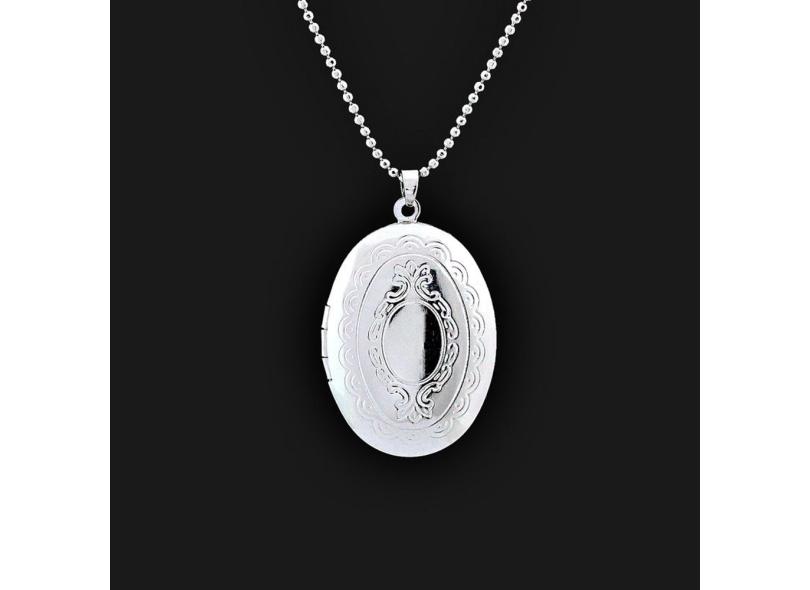 Colar com pingente relicário Vintage Prateado Para 2 Fotos