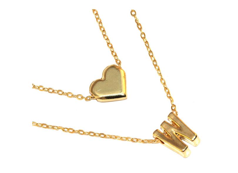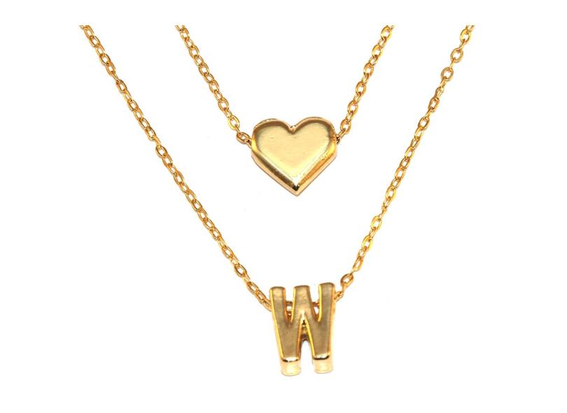Colar Cordão Duplo Minha Inicial W Lembrancinha Folheado