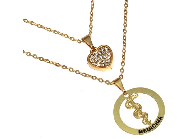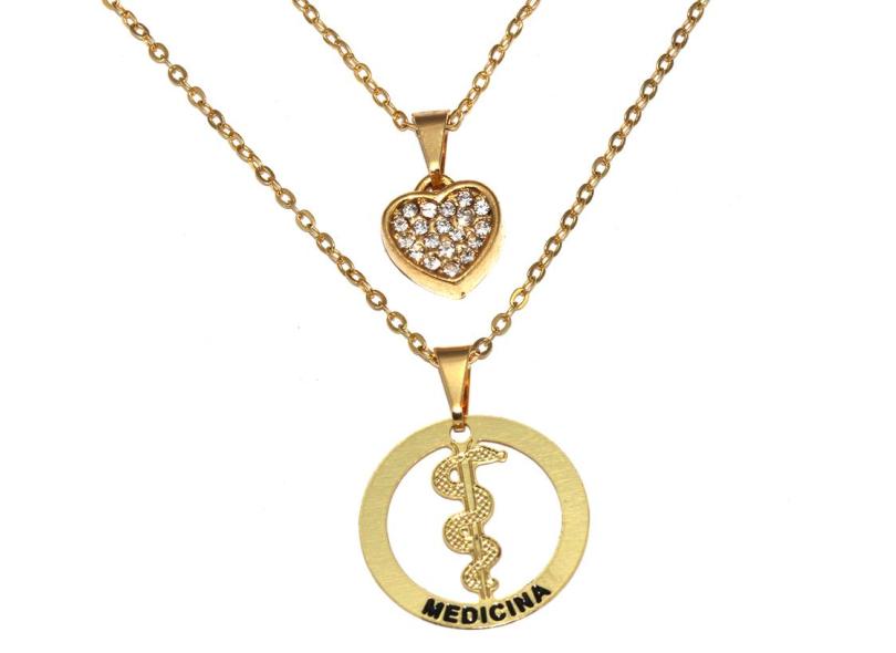 Colar Cordão Duplo Minha Profissão Medicina Medica Folheado