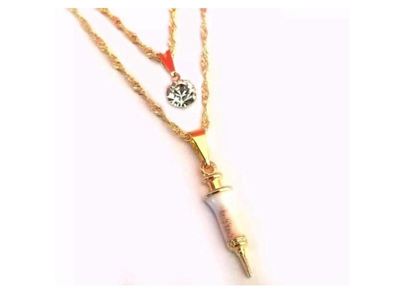 Colar Cordão Duplo Seringa Enfermagem Folheado 18k