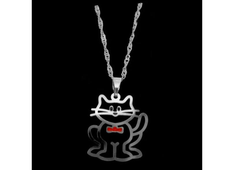 Colar Corrente e Pingente Gato Gatinho Folheado a Prata 925