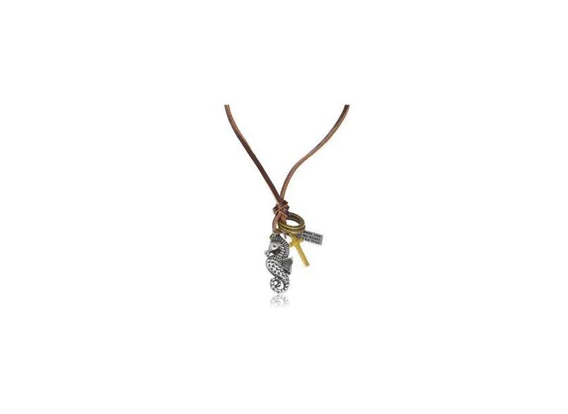 Colar de Couro Masculino Pingente Cavalo Marinho Ajustável