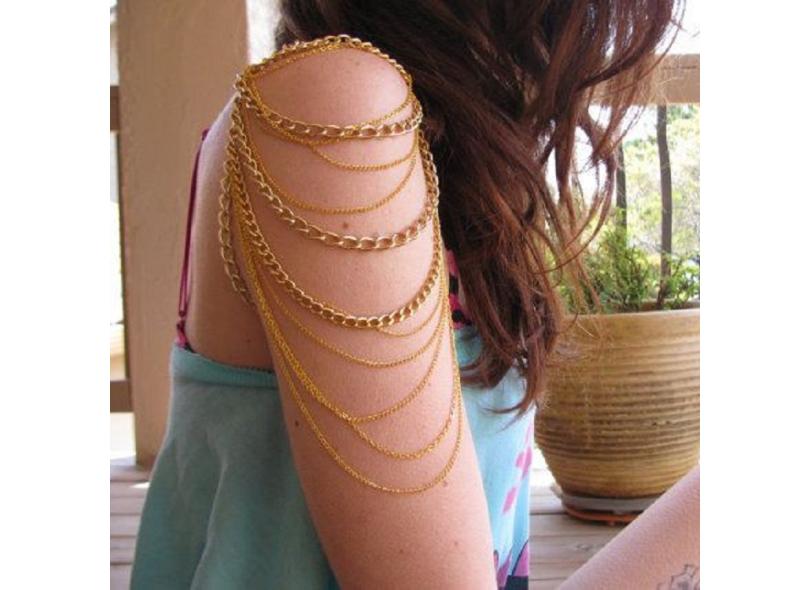 Colar De Ouro Multicamadas Feminino Braço Ombro Corpo Corrente Moda Jóias