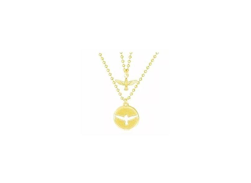 Colar Duplo Medalha Espírito Santo Pomba Folheado 18k