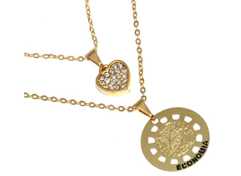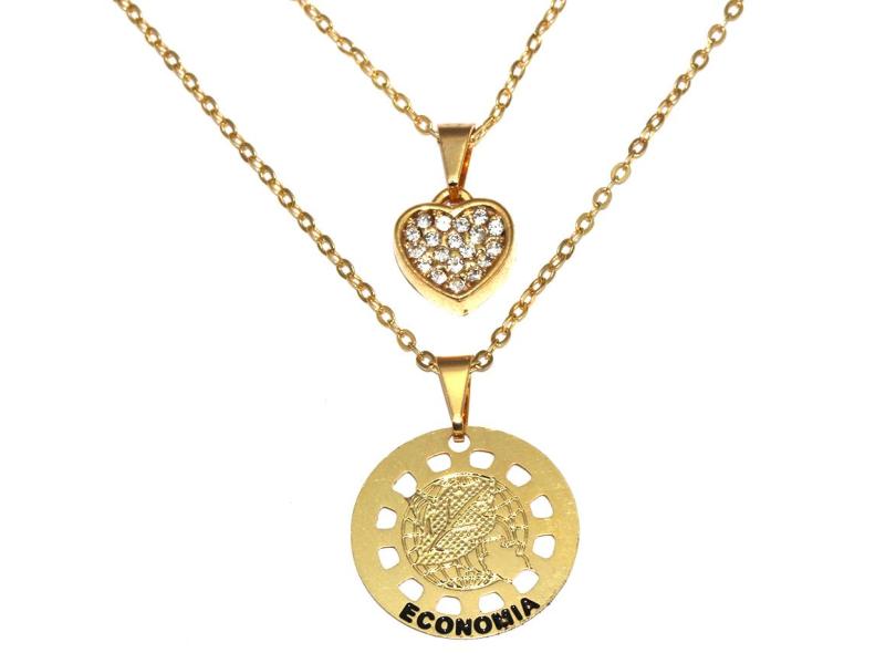 Colar Duplo Minha Profissão Economia Folheado Ouro 18k