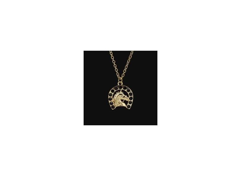 Colar Gargantilha Rosto Cavalo Na Ferradura Folheado A 18k