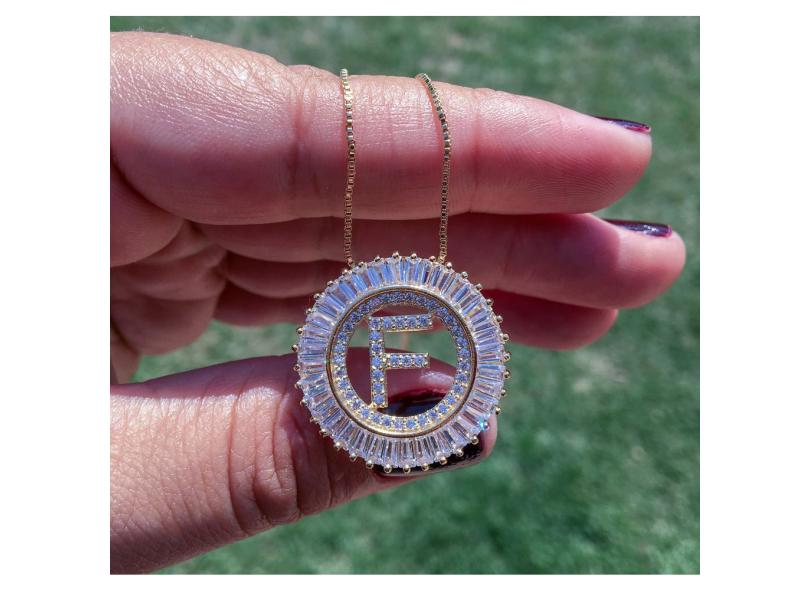 Colar Mandala Letra "f" Zircônia Do
