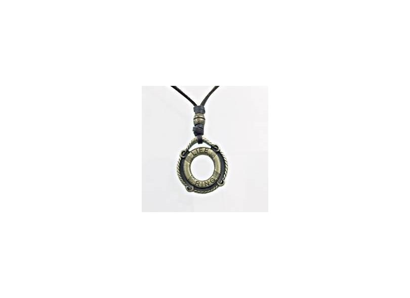 Colar Masculino Couro Pingente Boia Salva Vidas Life Ring