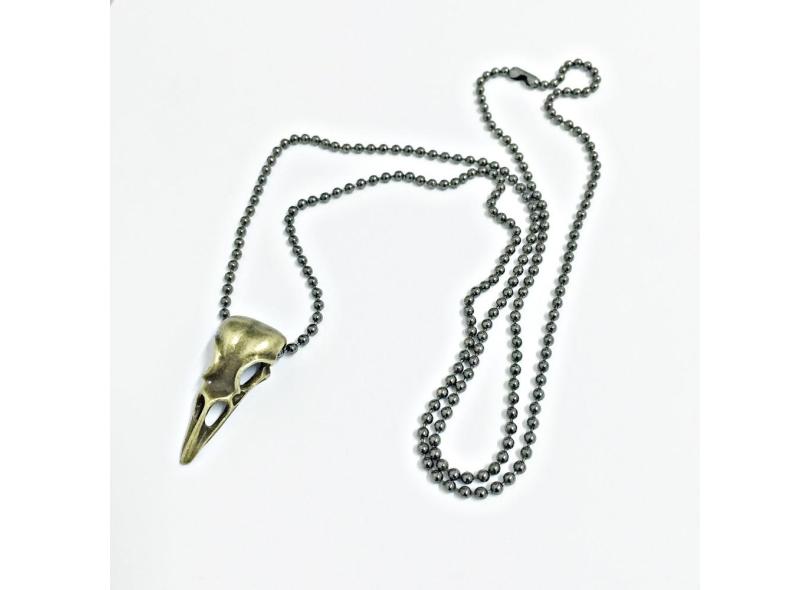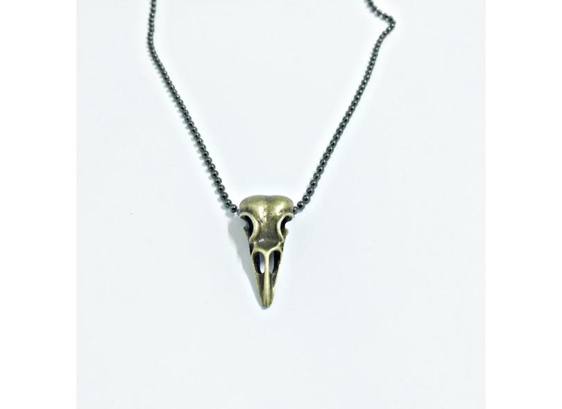 Colar Masculino Estilo Tribal Corrente E Cranio Ave Passaro