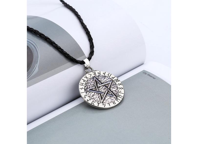 Colar pingente grande runa nórdica viking pentagrama joias wiccan pagão norueguesa