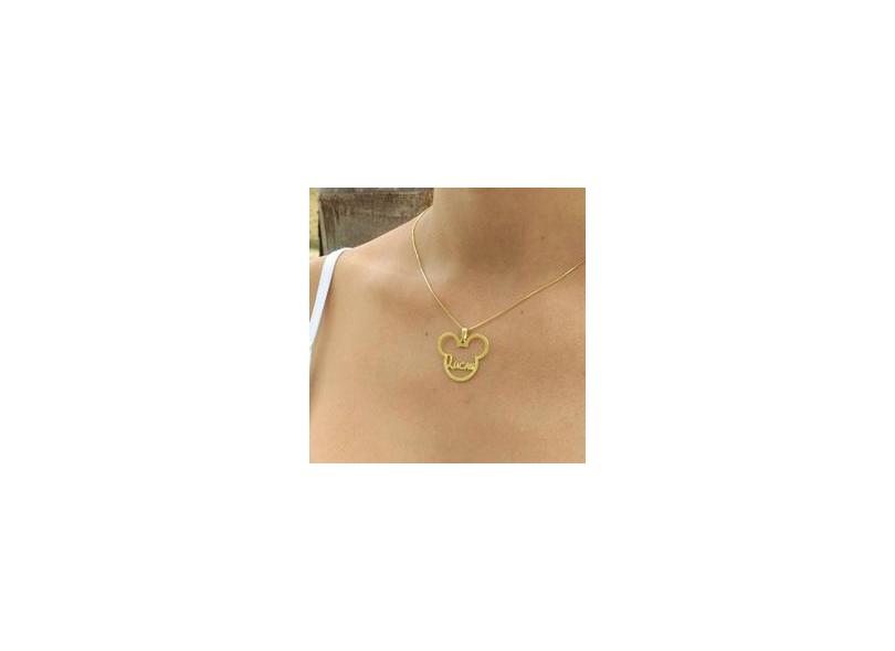 Colar Pingente Personalizado Mickey Nome Filho Folheado