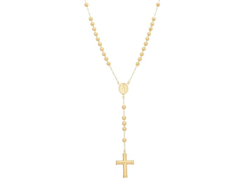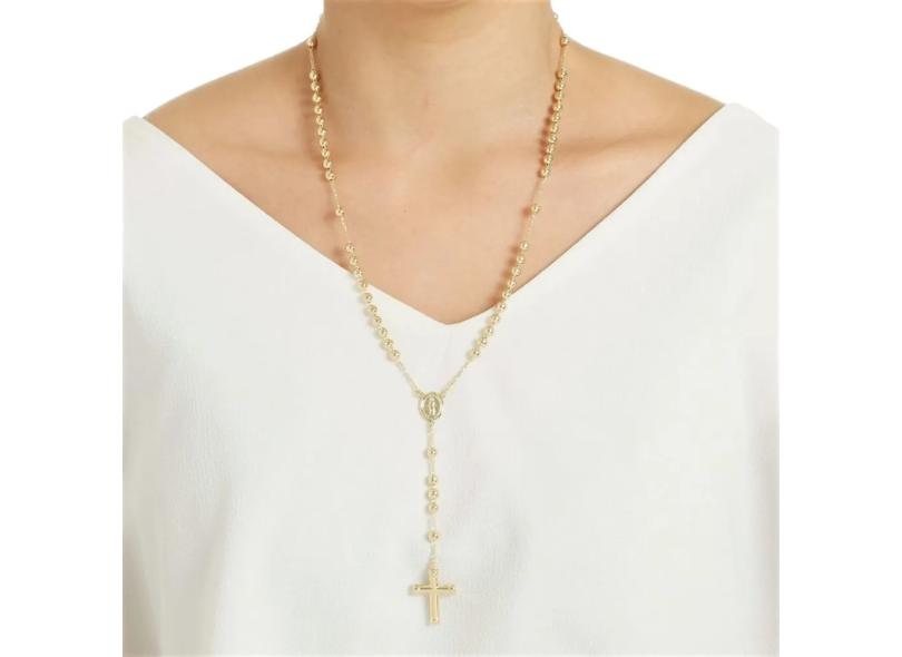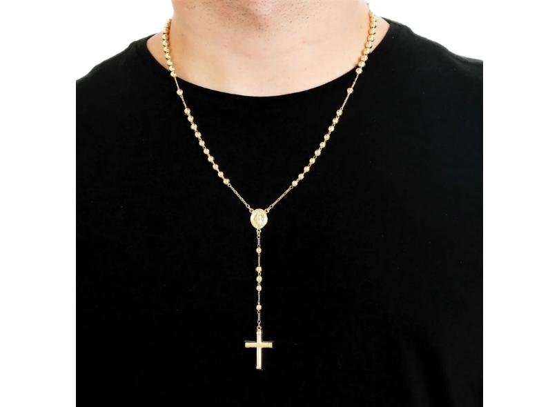 Colar Terço Feminino Masculino Bolinhas 60cm 5mm Folheado Ouro Semi Jóia