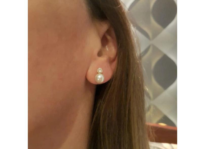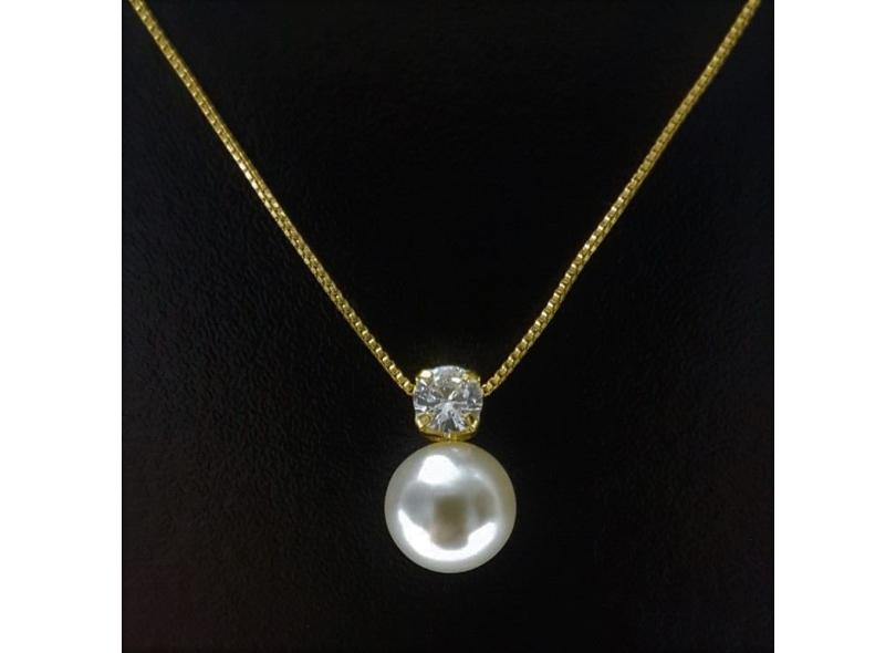 conjunto gargantilha colar e brinco zircônia pérola banhado a ouro Flertty