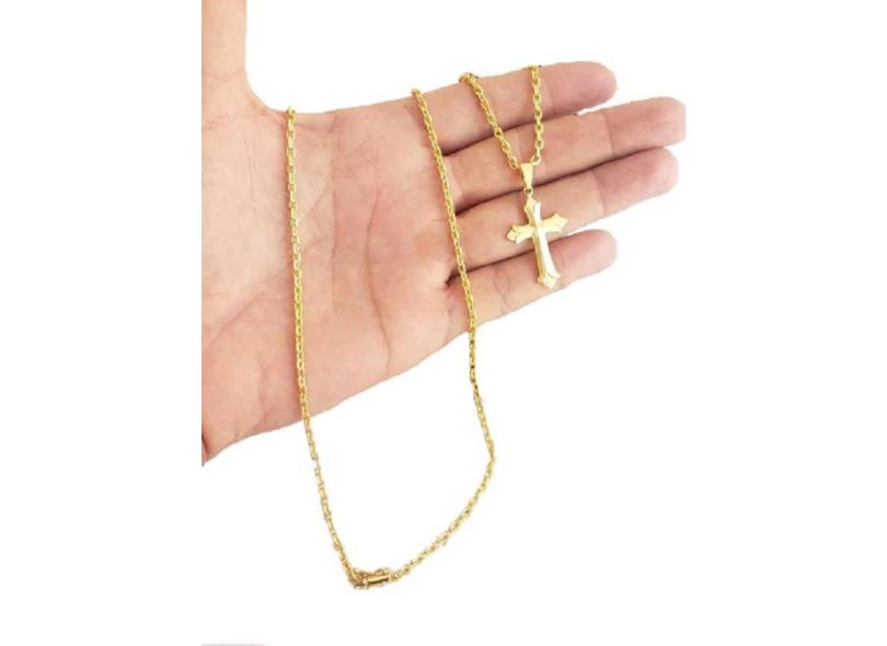 Cordão Banhado A Ouro 18K Cadeado 2Mm Com Pingente Cruz