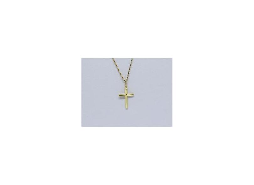 Cordão Corrente 45cm Pingente Cruz Crucifixo Ouro 18k 750