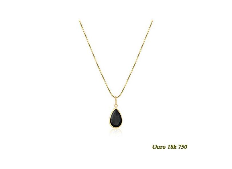 Cordão Feminino Veneziana Ouro 18k 50cm Gota De Zircônia 9mm Negro