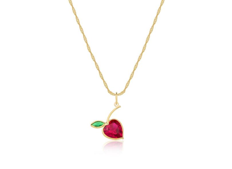 Corrente Cordão Feminino Ouro 18K 45Cm Com Pingente Maçã 7Mm