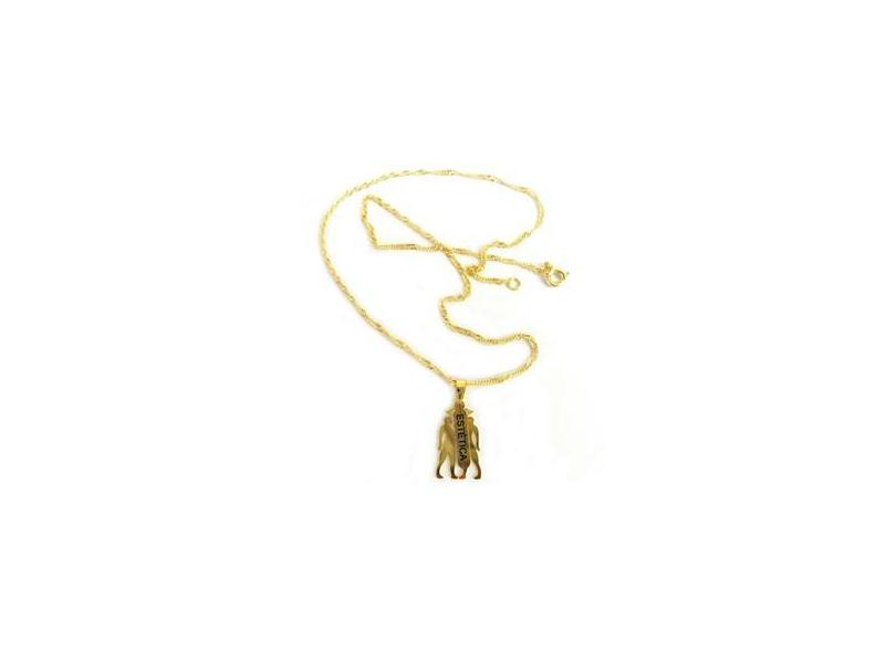 Corrente E Pingente Estética Esteticista Folheado A Ouro 18k