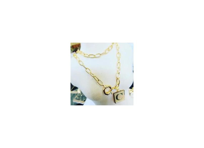 corrente grossa feminina banhada a ouro com pingente de letra
