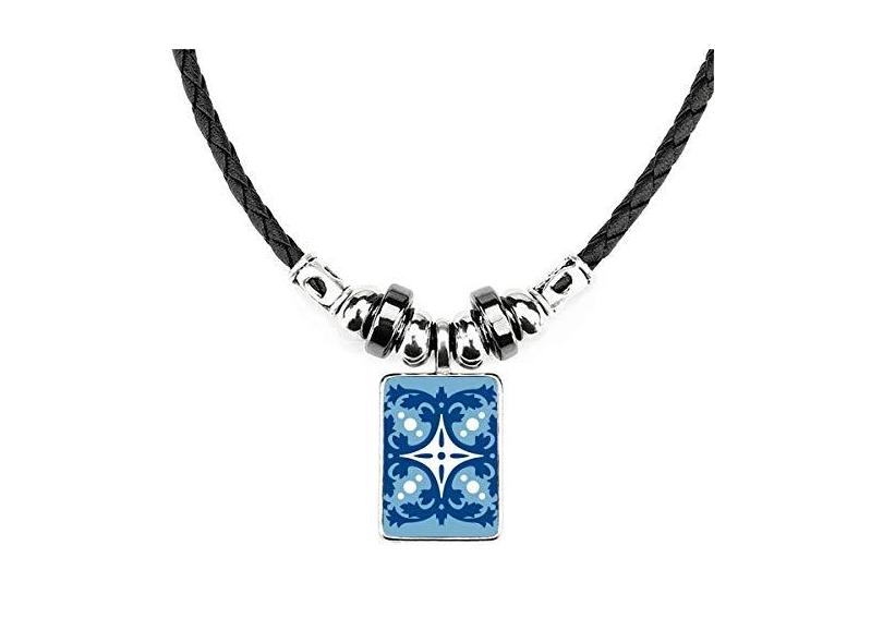 DIYthinker Colar de Ilustração Decorativa de Flor Talavera Joia Torque Pingente de Corda de Couro