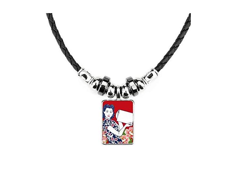 DIYthinker Colar de mulher da cultura chinesa joia com pingente de corda de couro