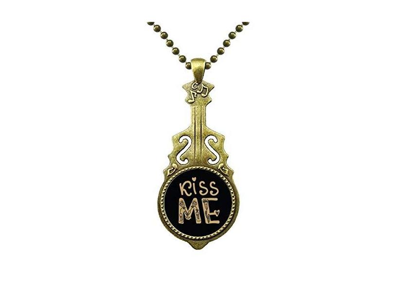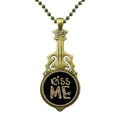 DIYthinker Kiss Me Colar com citação de ouro escrito à mão com pingente de música de guitarra antiga