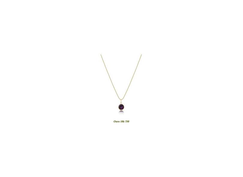Gargantilha Corrente Veneziana Ouro18k 50cm + Ponto De Luz Zircônia Ametista Roxa