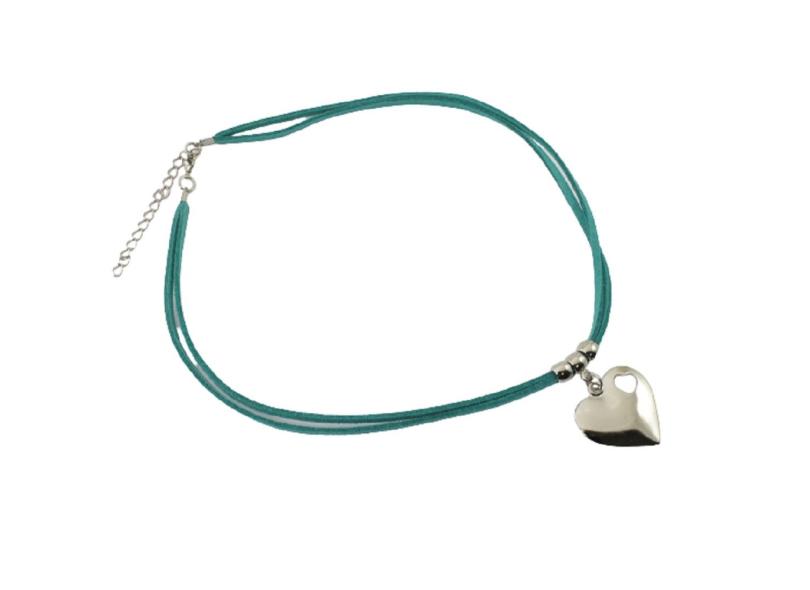Gargantilha de couro turquesa coração bijuterias acessorios