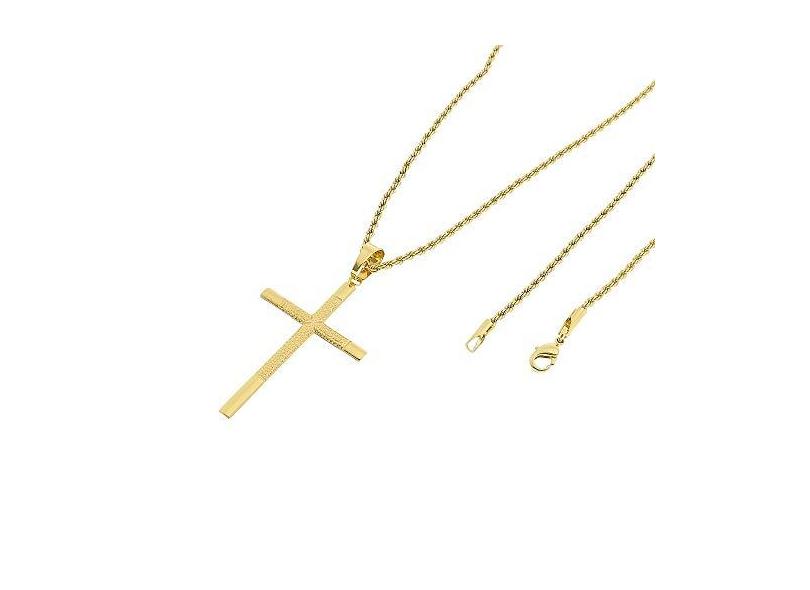 Kit Pingente Cruz com Corrente Elo Baiano 2mm e 60cm Folheado a Ouro 18k