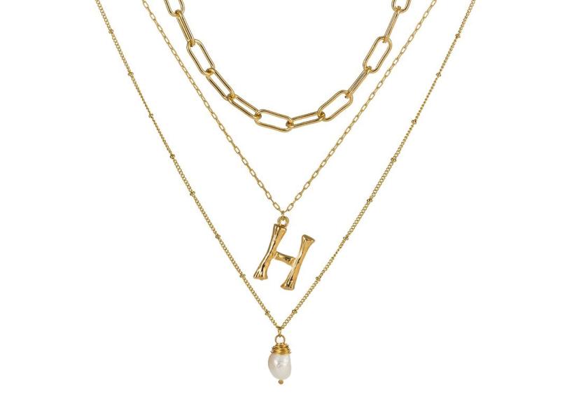 Letter Luz NZ426-X Jewelry26 Inglês Colar Multilayer Pedra Natural-LUMINOUCUP