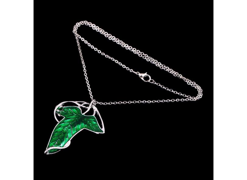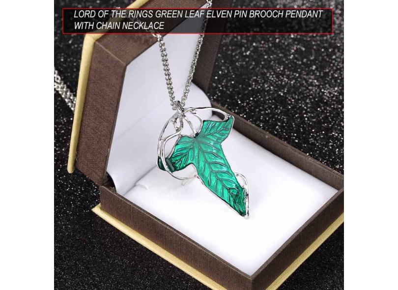 Pendente de broche de elfo de folha verde do senhor dos anéis com colar de corrente