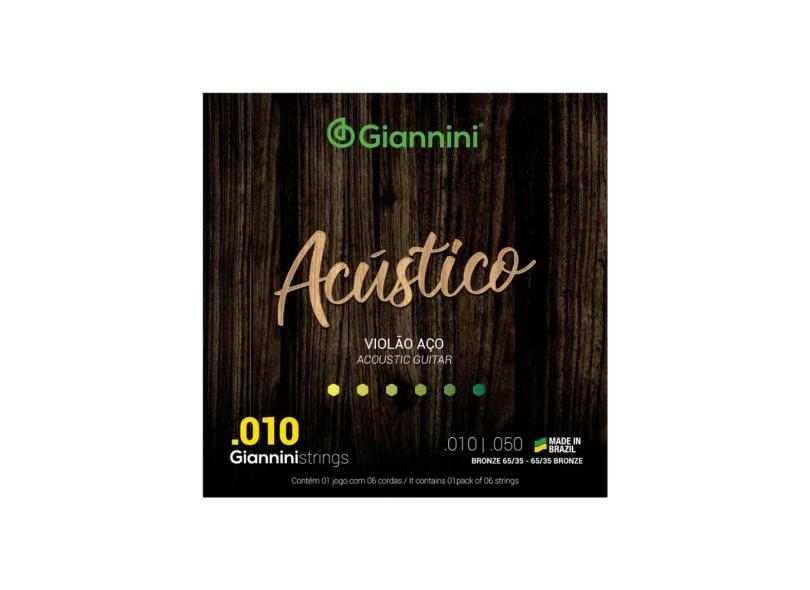 Encordoamento para Violão Aço 6 cordas Giannini Acústico Bronze 65/35 GESWAM .010 .050
