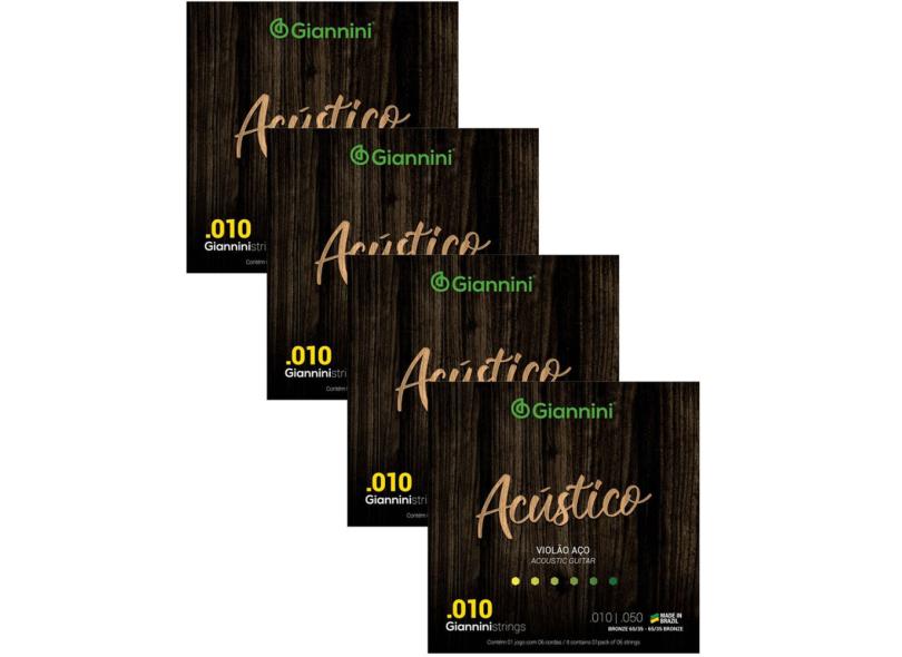 Kit Com 4 Jogos De Cordas Giannini Violão Aço 010