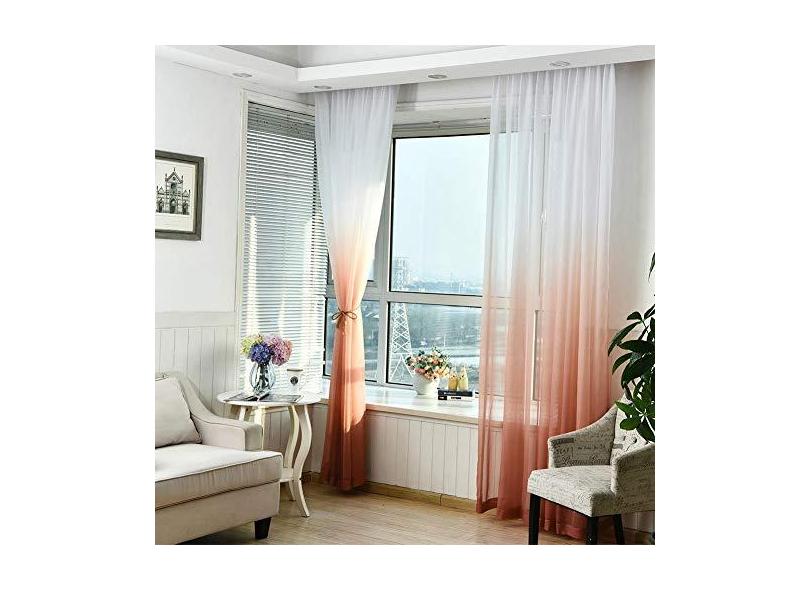 biliten Cortina de janela transparente de tule bordada degradê colorida para quarto, sala de estar, banheiro, quarto de criança, L 100 x C 273 cm
