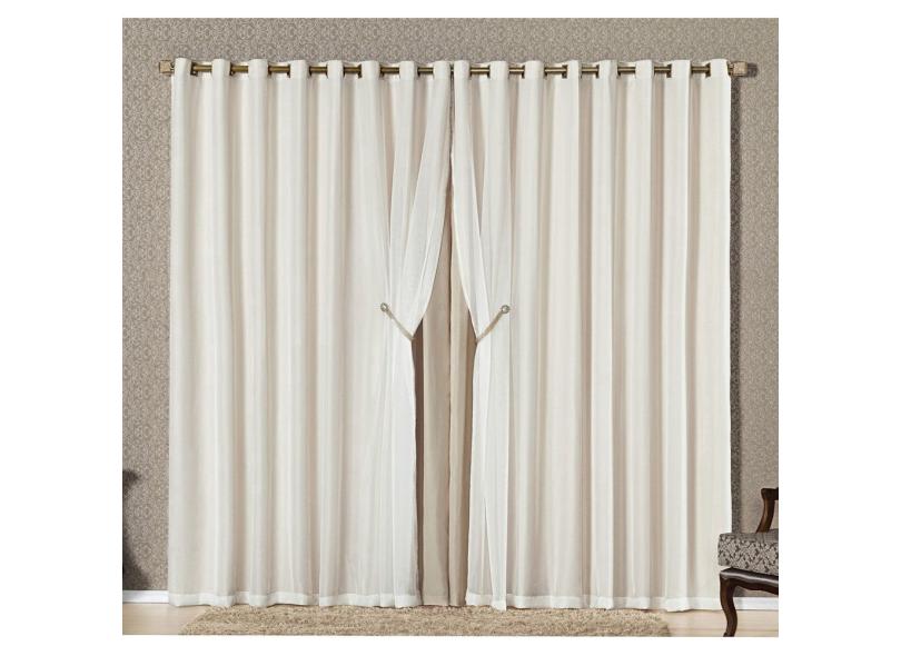 Cortina Bélgica 4,00m X 2,70m Bege Tecido Microfibra Com Voal Pingentes Luxo