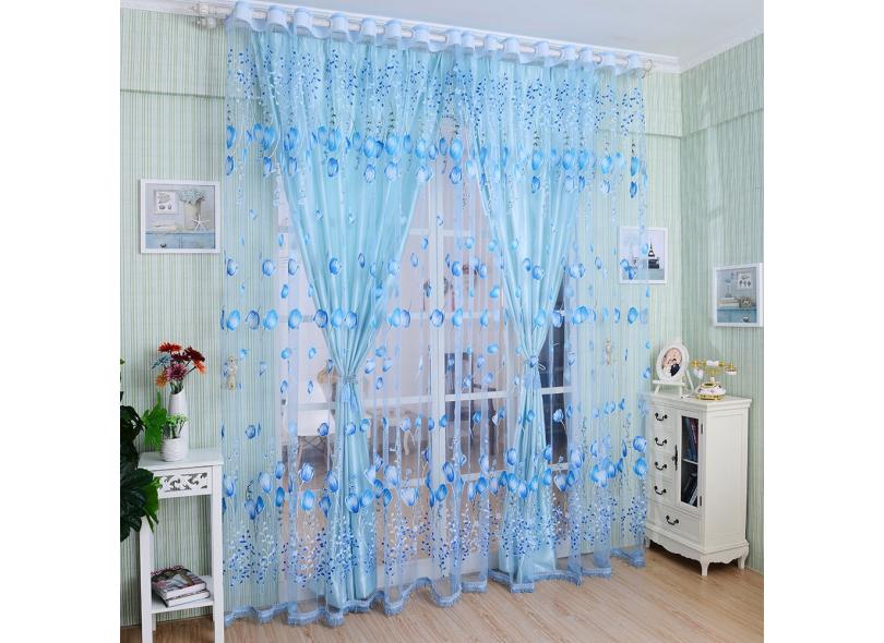Cortina de janela transparente com bastão de bolso Tratamento de cortina de cortina para varanda