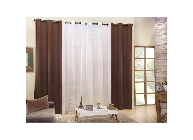 Cortina de Varão 4 Metros para Sala / Quarto 5m x 2,70m Palha / Tabaco Cetim Amassado