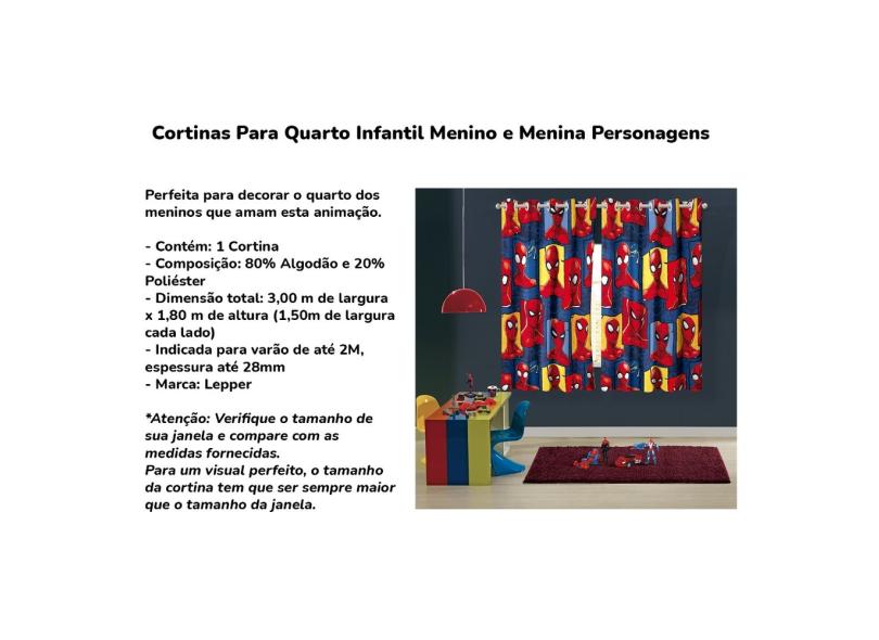 Cortina Infantil Para Quarto Spider Man Personagens Kids Menino Menina
