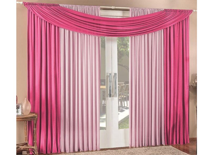 Cortina Para Sala De Jantar Luxo Moderna Bonita 3,00 Metros Malha Em Gel Para Varão - Pink /