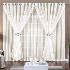 Cortina Paula 2,00m x 1,70m Palha Tecido Voal Leve Clean Para Sala ou Quarto
