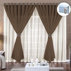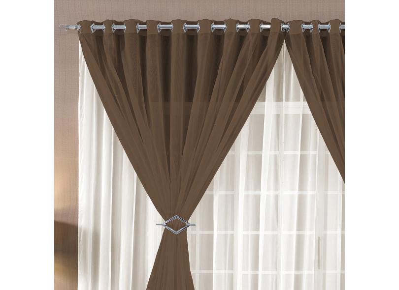 Cortina Paula 2,00m x 1,70m Tabaco Para Trilho Comum Tecido Voal Leve Clean
