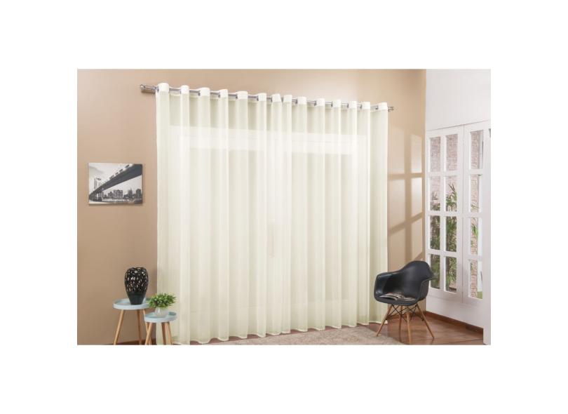 Cortina Sala Quarto Voil 4,00x2,30 - Ilhós Cromado para varão até 3 metros - Palha