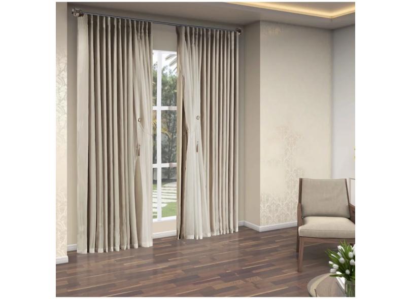 Cortina Suíça P/ Trilho Suiço 3,00 larg. x 2,50 alt. Forro e Voil - Bege