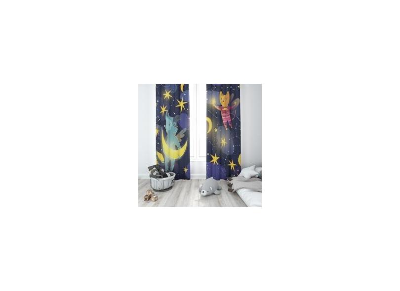 Cortina Tecido Oxford Quarto Infantil Cachorro e Gato ao Espaço Iluminado - 140x220cm