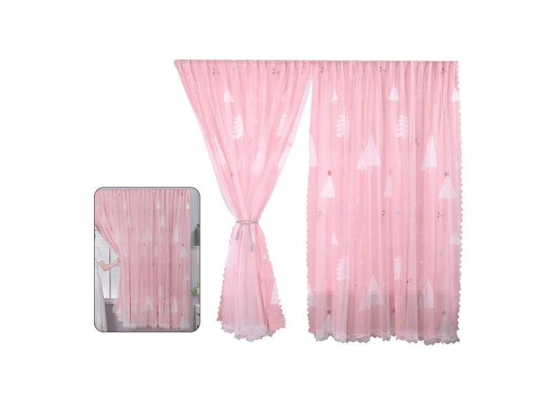 Cortinas Sala de estar Dupla Camada de Poliéster Voile Cortinas Tratamento de Janela Tamanho Multi-