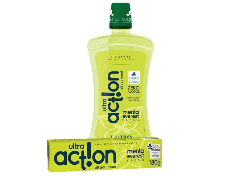 Kit Creme Dental Ultra Action Menta Everest 164g + Antisséptico Zero Menta Everest 1L