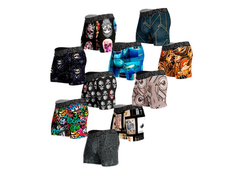 Kit Com 10 Cuecas Boxer Kevland - Kit Com ESTAMPAS SORTIDAS