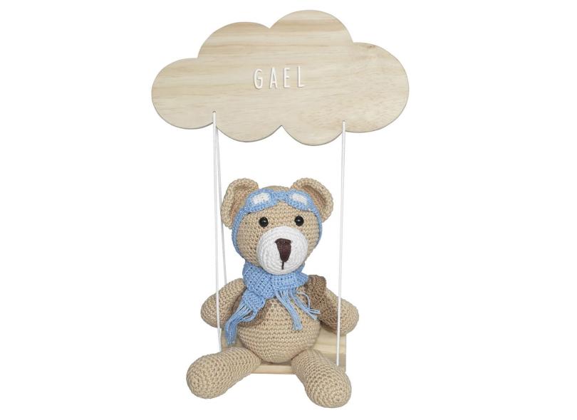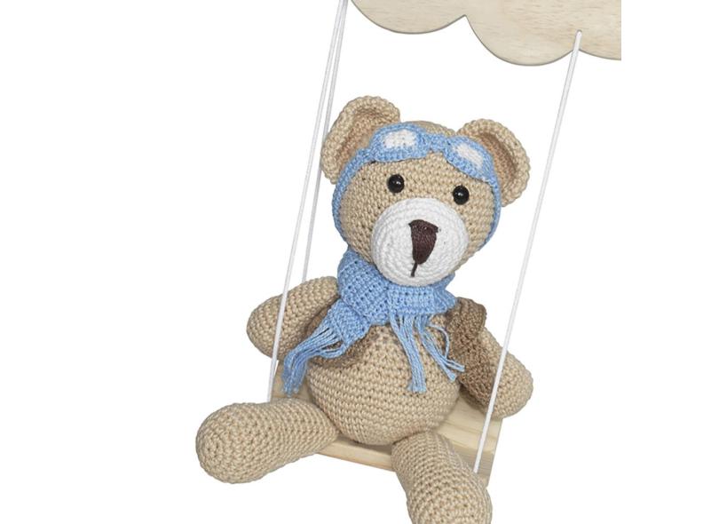 Porta Maternidade Nuvem Balança com Ursinho Aviador Quarto Bebê Infantil Menino