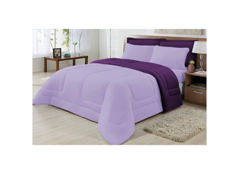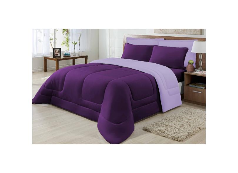 Edredom Dupla Face Cama Casal Queen Malha 1 Peça - Roxo/Lilás
